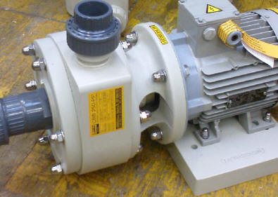 | .SPLOŠNOCentrifugalne črpalke so namenjene za prečrpavanje čistih ,agresivnih medijev in drugih tekočin katerih vsebina ni eksplozivno nevarna. Sama oblika in koncept je izveden tako da se prvenstveno uporablja pri prečrpavanju nevarnih snovi ,olj,emulzij, kislin,lugov,živilskih tekočin, ter drugih tekočih PRI NAJ ZAHTEVNEJIH APLIKACIJAH (koncentrirane kisline,višje temperature , tlak na sesalni strani ...) Črpalka je grajena tako da je notranjost zaščitena pred prodiranjem grobih delov in od škropljenja -špricanja medija po okolici zaradi visokih tlakov. Črpalka ima vgrajeno mehansko drsno keramično tesnilo ki omogoča optimalno varnostno zaščito pred prodiranjem fluida iz črpalke in omogoča tesnenje tudi v NAJZAHTEVNEJŠIH fazah obratovanja Črpalke so izdelane iz raličnih materialov glede na namen in sicer iz termoplastov -polipropilena PP, polivinilklorida PVC,polietilena PEHD
