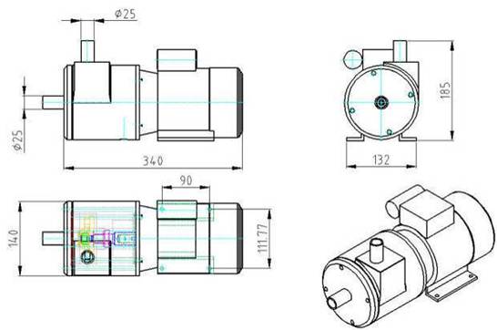 | 3D-CAD SESTAVNICA na sestavnici je prikazana črpalka ki je sestavljena iz 4 sklopov. Kompletno konstrukcijo držijo kar skozni vijaki direktno v prirobnico s tem se znebimo mnogo dodatnih elementov in vzdrževanje je tako sila poenostavljeno. |