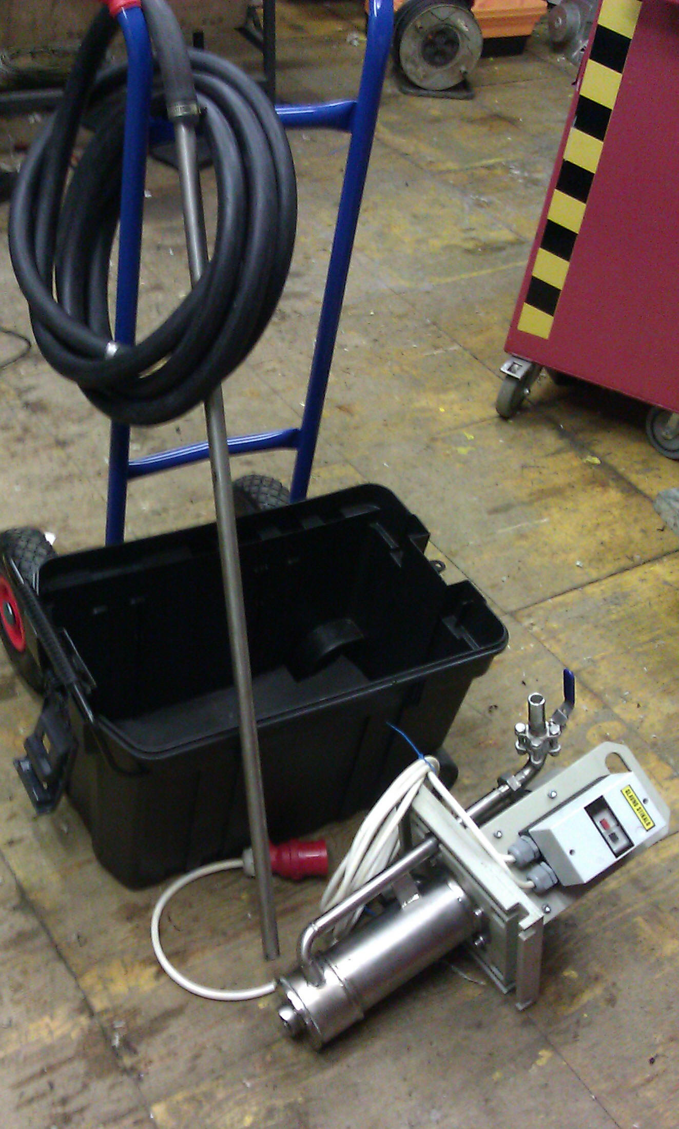 črpalka je montirana na prenosnem prevoznem vozičku |