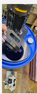 m z polipropilenkim brizganim rotorjem in pp prevleko jeklene gredi.